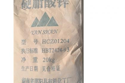 硬脂酸锌为白色轻质细微粉末。分子式分子结构RCOOZnOOCR(R为工业硬脂酸中的混合烷基),可燃,比重1.095,自燃点900℃,熔点130℃,有滑腻感。不溶于水、乙醇、乙醚,可溶于热乙醇、松节油、苯等有机溶剂和酸。硬脂酸锌在有机溶剂中加热溶解后遇冷成为胶状物,遇强.酸分解为硬脂酸和相应的锌盐。有润滑性,有吸湿性,无du,微具刺激性、无污染、无危险特性。利用硬脂酸锌溶于苯而硬脂酸钙不溶于苯的性质,就可以把硬脂酸锌和硬脂酸钙分开。